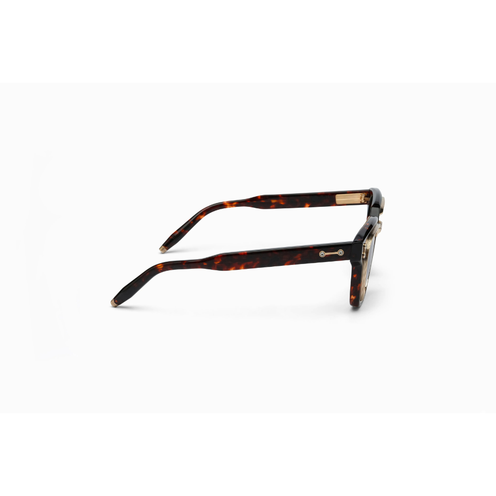 Named after the historic mission to land astronauts on the Moon and return them safely to Earth by the end of the 1960s, captures the spirit of adventure and exploration. With a timeless, iconic aesthetic and luxurious craftsmanship, the enriched metal rim, encased within an acetate outer frame, creates a layered structure that reflects both strength and elegance. Combining titanium and acetate in a wellington shape, it balances modern design with classic appeal. The subtle edges on the acetate brow evoke the light and depth of distant celestial bodies, while the titanium nose bridge and metal accents, inspired by models like Solis, enhance the frame's refined durability. Temples share design elements from the Phoenix model, with Havana hues offering rich contrasts, making Apollo a sophisticated tribute to both the cosmos and daring adventure with sun and optical versions.