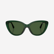 The sunglasses feature a chic cat-eye silhouette, designed for a flattering fit on various face shapes. They are made from premium materials, with a transparent beige acetate frame complemented by slender tubular temples that showcase Burberry's iconic check pattern for a luxurious finish. The lenses are dark brown, offering both style and protection.