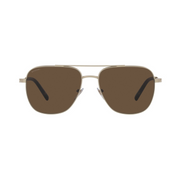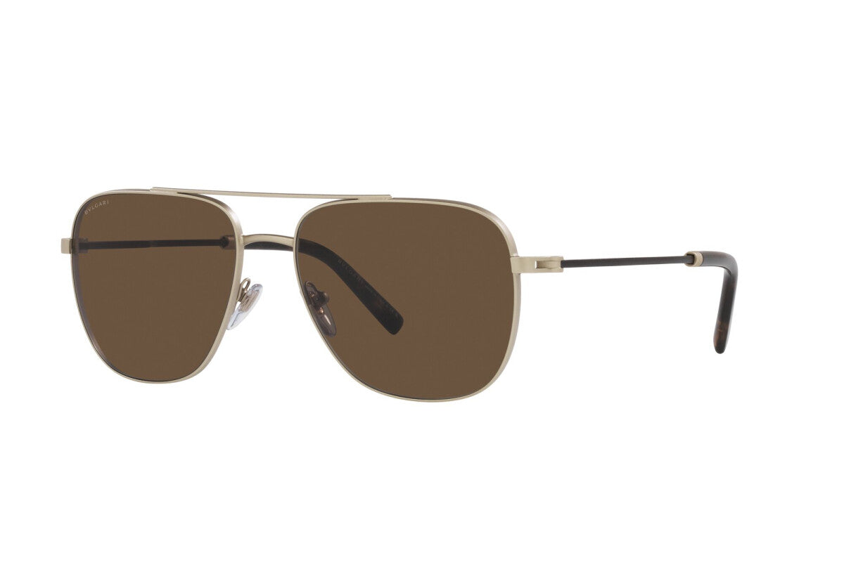 These sunglasses feature a matte pale gold metal frame paired with dark brown lenses, offering both style and essential UV protection. The design reflects BVLGARI's commitment to timeless elegance and modern aesthetics.