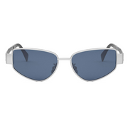 The CL40293U 16V is part of Céline’s iconic Metal Triomphe collection, blending a sleek full-metal frame with a refined cat‑eye–rectangle hybrid silhouette. The shiny palladium-tone frame is paired with crisp blue nylon lenses for a contemporary yet timeless look