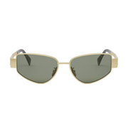 This model is part of Céline’s Metal Triomphe collection, offering a refined square/cat-eye hybrid design. Featuring a shiny gold metal frame and muted green lenses, it combines Parisian elegance with a strong architectural presence—silhouetted with grace and edge.