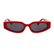 The CELINE CL40269U 66A Triomphe Geometric Sunglasses are a striking accessory that combines bold design with luxury craftsmanship. Featuring a vibrant red acetate frame (color code 66A) and smoke grey lenses, these sunglasses are part of CELINE's Triomphe collection, known for its distinctive geometric shapes and the iconic Triomphe logo on the temples.