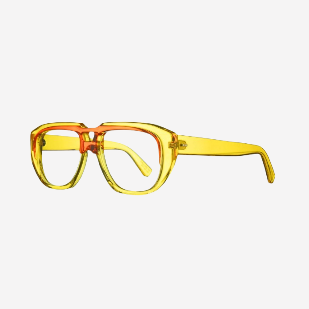 This is a distinctive aviator-style optical frame crafted from high-quality Italian acrylic, offering both durability and a lightweight feel. Handmade in France, this unisex frame features a lens width of 56mm, providing a bold and stylish look. Available in various vibrant colors, the Falcon T4 allows wearers to express their unique style.