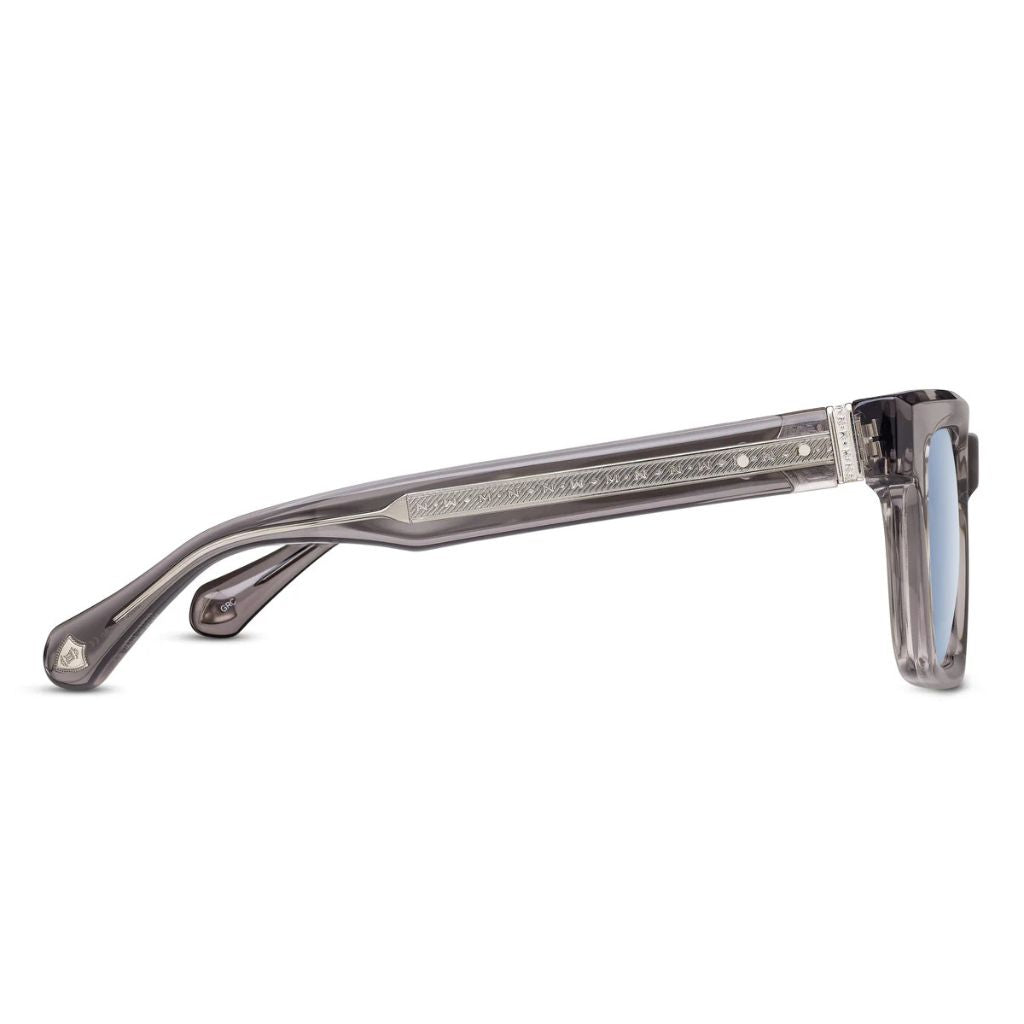 Inspired by the character defining eyewear worn in the late 50's and early 60's, the M1033 is a bold rectangular style that stands apart with "TV-cut" facets, hand sculpted in Japanese acetate, complimented by a custom riveted hinge, and temple core engraved with our signature M+N motif. Signature M+N engraving. Japanese Acetate Construction.