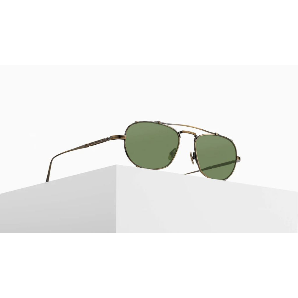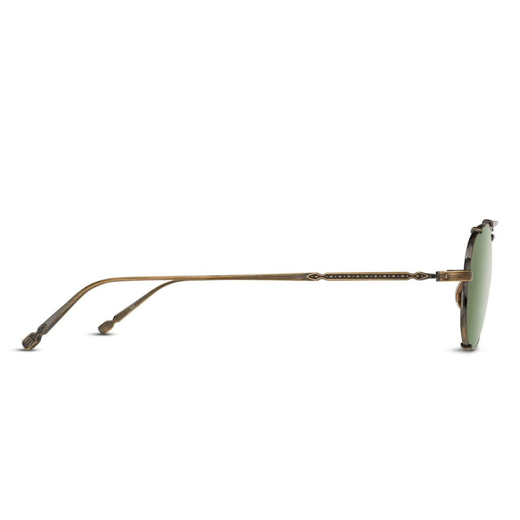 Heritage Collection. Original Release: 1989 A new limited edition sunglass that pedestals our unrivaled craftsmanship and spirit of forward thinking design. Heritage Collection. Original Release: 1989 M3151 reimagines the classic navigator silhouette through the lens of modern Japanese craftsmanship. Featuring a hand-layered top bar and ultra-lightweight titanium temples, this all-titanium frame delivers bold presence without sacrificing comfort. Inspired by early 20th-century pilot eyewear, it merges vintage influence with a sharp contemporary aesthetic. Titanium Construction. Precious Metal Finishing. Art Nouveau Inspired Filigree. Made in Japan