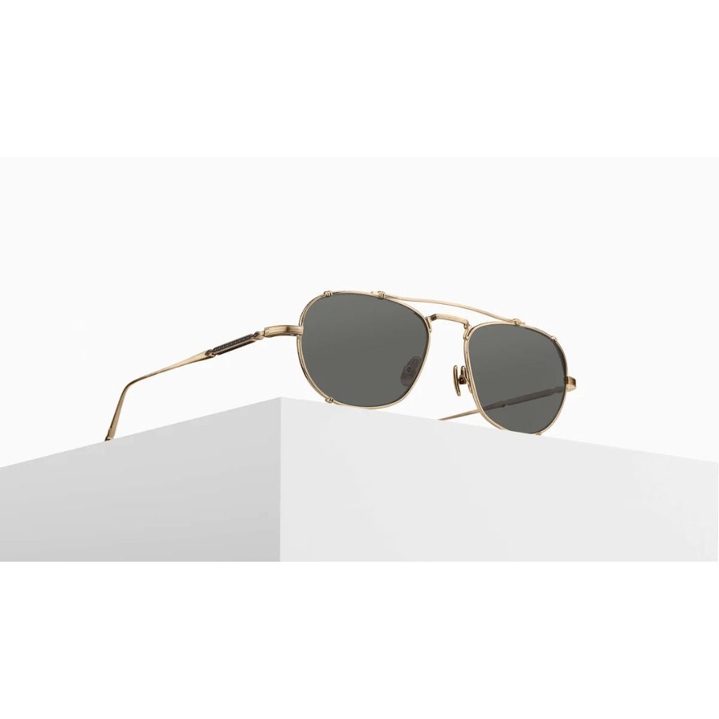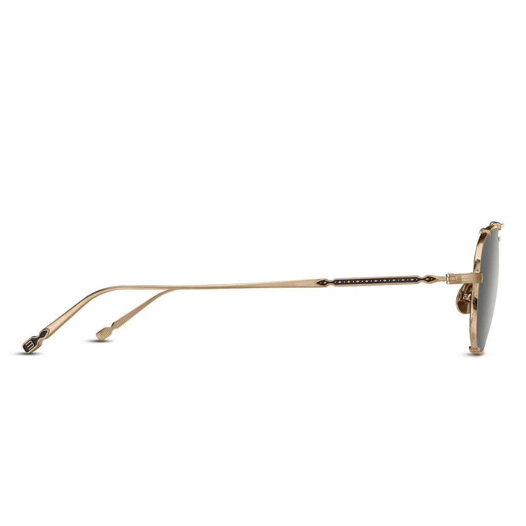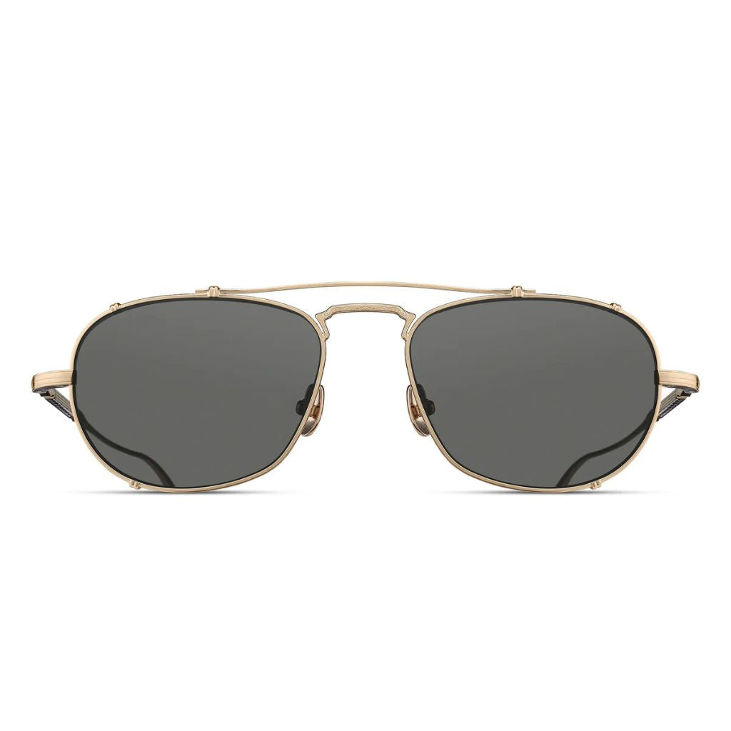 M3151 reimagines the classic navigator silhouette through the lens of modern Japanese craftsmanship. Featuring a hand-layered top bar and ultra-lightweight titanium temples, this all-titanium frame delivers bold presence without sacrificing comfort. Inspired by early 20th-century pilot eyewear, it merges vintage influence with a sharp contemporary aesthetic. Titanium Construction. Precious Metal Finishing. Art Nouveau Inspired Filigree. Made in Japan