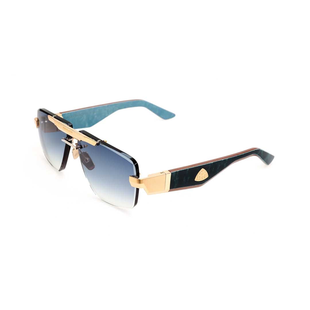 Step into the realm of unparalleled luxury with the Maybach The President II (MG‑WEU‑M10). Handcrafted in Germany, this premium aviator silhouette merges ultra-light platinum-plated titanium with exquisite Deep Teal Ocean madrone, Bubinga, and Niagara Blue Madrone wood accents, presenting craftsmanship in its finest form. The elegant light blue gradient lenses offer full UV protection, combining opulence with everyday wearability. With dimensions of 62–11–145 mm, this elite model represents the pinnacle of Maybach’s eyewear artistry.