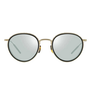 The Oliver Peoples OV1318T 5035 sunglasses are a modern take on a classic panto lens shape. The frames are made of high-quality titanium and feature a unique acetate insert that creates a side shield aesthetic. The sunglasses are also equipped with custom eyewear with a perforated repeat pattern of the Oliver Peoples logo.