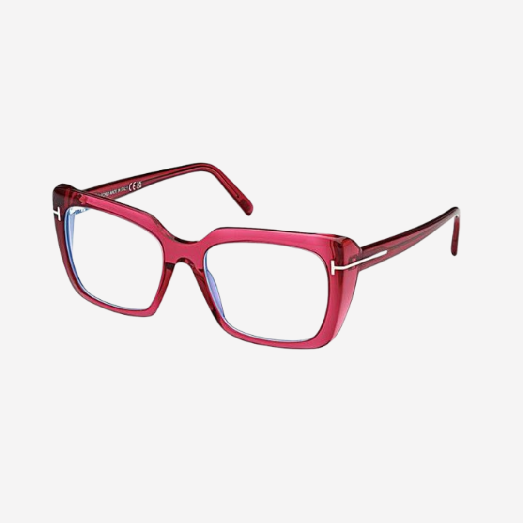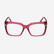 These eyeglasses are a stylish and functional choice for women seeking both fashion and practicality. These frames feature a square shape crafted from high-quality acetate in a shiny dark fuchsia color, offering a bold yet sophisticated look. A notable feature of this model is its blue light filtering lenses, designed to reduce eye strain from prolonged screen exposure.