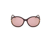 Tom Ford TF1090 48Z sunglasses offer a timeless round frame with a luxurious gold metal build. The potentially light mirror grey lenses add a touch of modern flair, making them a sophisticated and versatile choice.