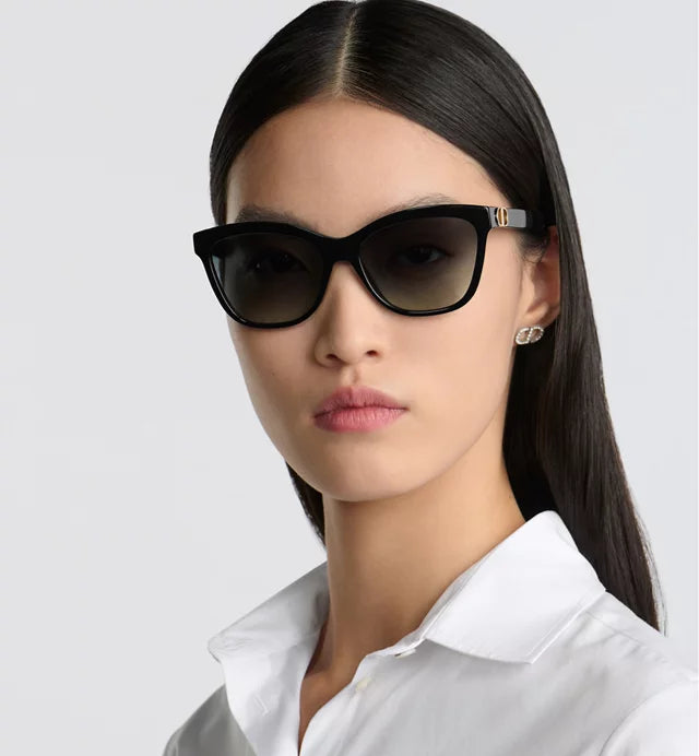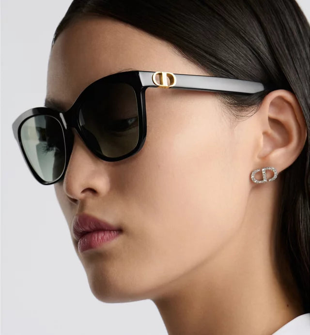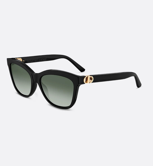 The 30Montaigne Mini BI sunglasses offer a new take on the emblematic CD signature hinge in a miniature version. The elegant butterfly-shaped black acetate frame with gray gradient lenses showcases a 30Montaigne signature engraved on the interior of one temple, inspired by the embossed detail on the namesake bag.