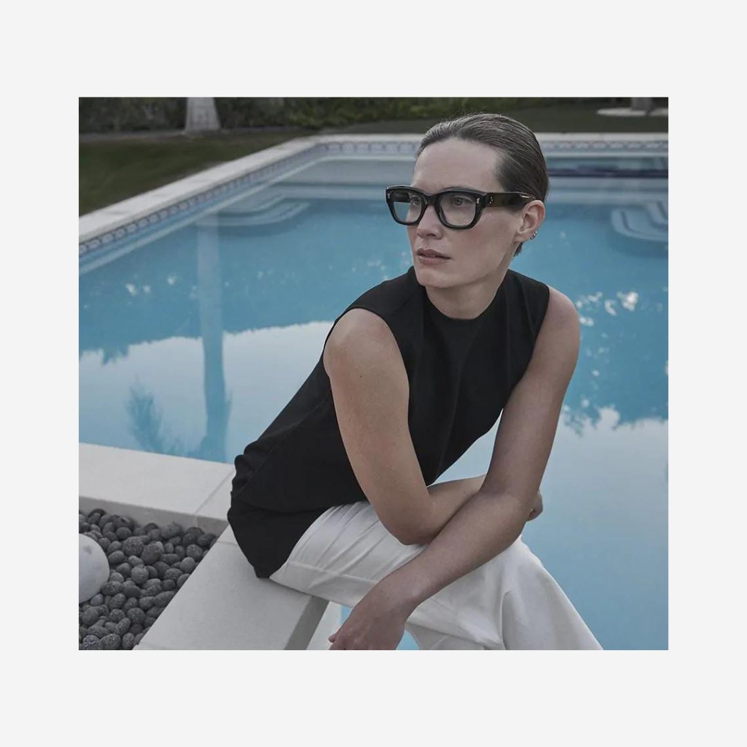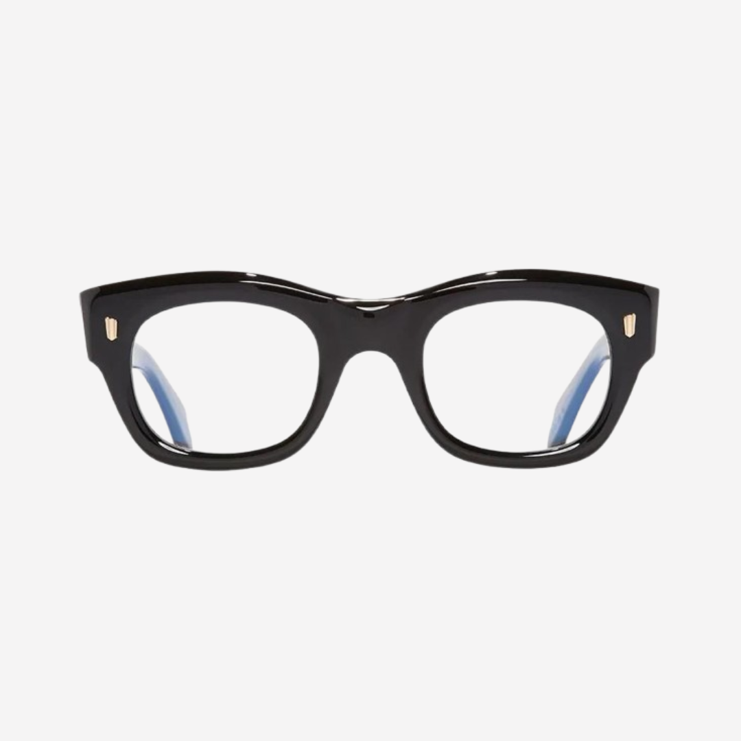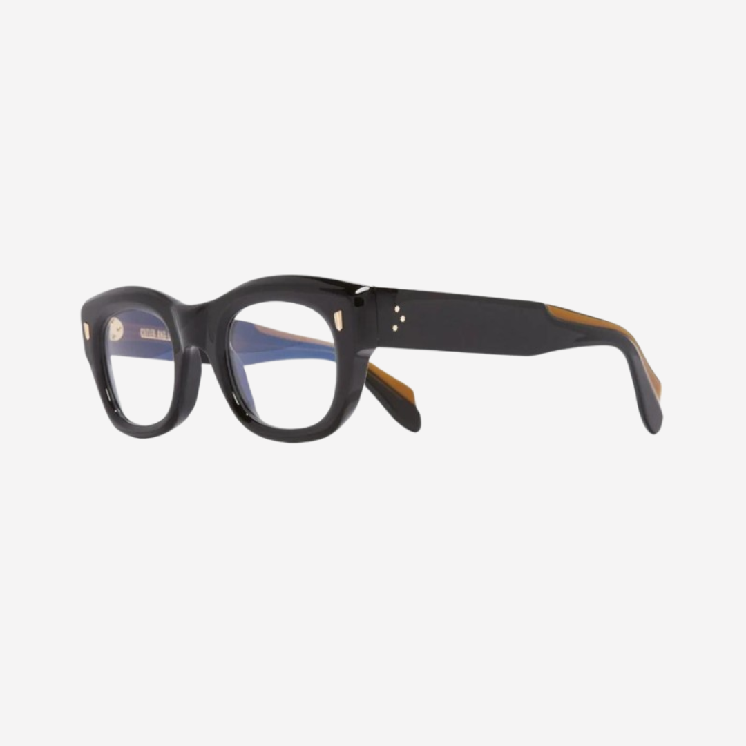 The frame features a stylish black and brown frame, offering a modern look. This refined design is complemented by clear lenses. With its minimalist yet striking aesthetic, this is a perfect choice for those who appreciate high-quality craftsmanship and contemporary eyewear design.