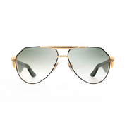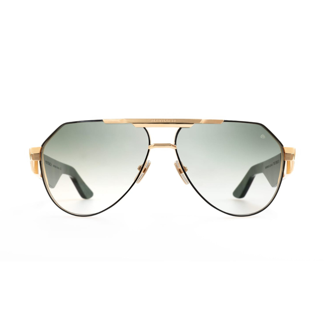 The King III MG/B WDW Z66 by Maybach Eyewear is a luxurious aviator-style frame blending Mellow Gold-plated titanium with black lacquer facings and exquisite Karelian birch burr wood temple inserts. Crafted by hand in Germany, this regal silhouette reflects Maybach’s signature bold elegance and ultra-luxury craftsmanship.