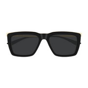 Bring bold elegance to your look with the Saint Laurent SL 765 001 sunglasses. These striking frames feature a contemporary cat-eye–inspired silhouette with a recycled acetate front panel paired with a sleek metal top bar and temples. Available in both Black and Havana, the design is finished with a subtle Saint Laurent logo engraving on the temples. With solid black bio-nylon lenses offering full UV protection, this unisex pair balances modern design with vintage flair. Crafted in Japan by Kering Eyewear, it’s both a sustainable and sophisticated choice.